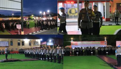LABUHANBATU-LH: Kapolres Labuhanbatu AKBP Dr Bernhard L Malau SIK MH memimpin Apel Pergeseran Pasukan (Serpas) pengamanan Pemilu tahun 2024 untuk wilayah Kabupaten Labuhanbatu
