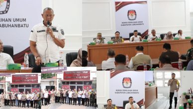 LABUHANBATU-LH: Kapolres Labuhanbatu, AKBP Dr. BERNHARD L. MALAU, S.I.K., M.H., bersama PJU turut hadir dalam rapat koordinasi yang membahas pendistribusian logistik untuk Pemilu
