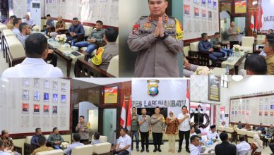 LABUHANBATU-LH: Sejumlah pejabat dari KPU Kabupaten Labuhanbatu, KPU Kabupaten Labuhanbatu Utara, Bawaslu Kabupaten Labuhanbatu, dan Bawaslu Kabupaten Labuhanbatu Utara berkumpul di Lobby Polres