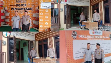 LABUHANBATU-LH: Personel Polres Labuhanbatu terus melaksanakan tugas pengamanan di sekitar Kantor Badan Pengawas Pemilu (Bawaslu) Kabupaten Labuhanbatu dan Labura, dalam upaya memastikan pelaksanaan