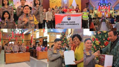 LABUHANBATU-LH: Mendekatkan diri ke tengah masyarakat dan menampung aspirasi dan keluhan warga, Polres Labuhanbatu melaksanakan Minggu Kasih, di Gereja GMI Jln Ahmad Yani