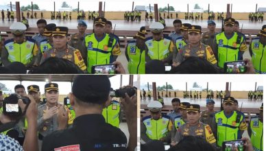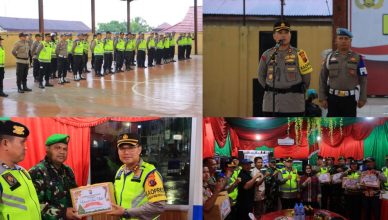 LABUHANBATU-LH: Kapolres Labuhanbatu AKBP Dr Bernhard L Malau SIK MH memimpin apel pasukan gabungan dalam rangka pengamanan Natal dan Tahun Baru (Nataru) di