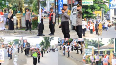 LABUHANBATU-LH: Personel Polres Labuhanbatu Amankan Kampanye Dewan Pengurus Daerah Partai Keadilan Sejahtera (DPD PKS) Kabupaten Labuhanbatu dan Kabupaten Labura. Kegiatan di Kabupaten Labuhanbatu