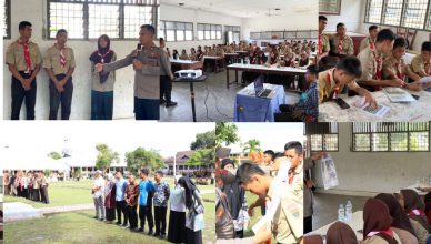 LABUHANBATU-LH: Kegiatan police goes to school, Personel Polsek Kualuh Hilir edukasi bahaya narkoba kepada pelajar, Jumat (01/12/2023). Kapolres Labuhanbatu AKBP James H. Hutajulu,