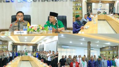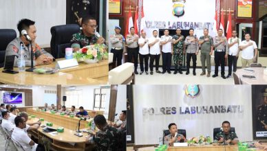 LABUHANBATU-LH: Kapolres Labuhanbatu, AKBP Dr. Bernhard L. Malau, S.I.K., M.H., yang diwakili Kabag Ops KOMPOL RAPI PINAKRI, SH., SIK., MH., memimpin rapat koordinasi