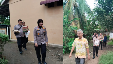 LABUHANBATU- Kanit Intel Polsek Panai Tengah IPDA Erik Rianto Hutabarat SH dengan sigap dan gerak cepat mengevakuasi warga yang pingsan akibat terlalu lama