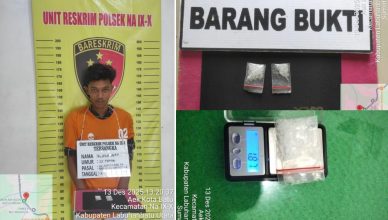 LABURA-LH: Seorang pria yang terakhir diketahui bernama Khoirul Saleh alias Irul berhasil diamankan oleh Team Unit Reskrim Polsek Na:IX-X Resor Labuhanbatu di lingkungan