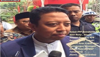 JAKARTA-LH: Ketua Umum Partai Persatuan Pembangunan (PPP) Romahurmuziy alias Romy akhirnya memenuhi panggilan Penyidik Komisi Pemberantasa Korupsi (KPK) hari ini (Kamis, 23/08/2018-Red) setelah
