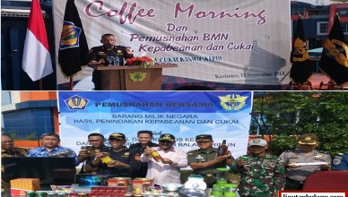 KEPRI-LH: Pada hari Kamis (13/09/2018-Red) tepatnya pada pukul 08.30 WIB, di atas Kapal Patroli BC 60001, telah berlangsung Coffee Morning dan Pemusnahan Barang