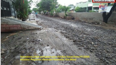 BEKASI-LH: Proyek peningkatan Jalan yang berlokasi di Bumi Suzuki Permai RT.02/024, Kelurahan Pengasinan, Kecamatan Rawalumbu, Kota Bekasi, terindikasi sarat dengan kecurangan. Pasalnya, proyek