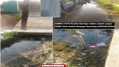 KARAWANG-LH: Limbah berupa lumpur Perusahaan Daerah Air Minum (PDAM) Cabang Pembantu yang terletak di Desa Teluk Ambulu Kecamatan Batu Jaya Kabupaten Karawang sangat