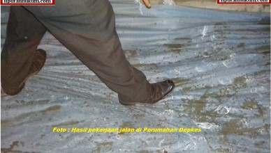 BEKASI-LH: Pekerjaan jalan di Perumahan Depkes, Jalan Durian Blok G Rw 06 diduga terjadi kecurangan vlasi, terlihat dari foto di lokasi pekerjaan bahwa